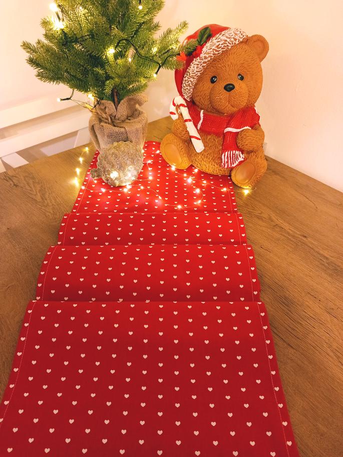 Romantický běhoun v červené barvě s bílými srdíčky vnese do vašeho domova teplo, útulnost a kousek venkovského kouzla.