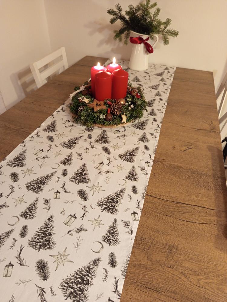 Běhoun je ušit z kvalitní bavlněné směsi, příjemné na dotek a snadno udržovatelné. Ideální pro slavnostní i každodenní stolování v zimním období.
