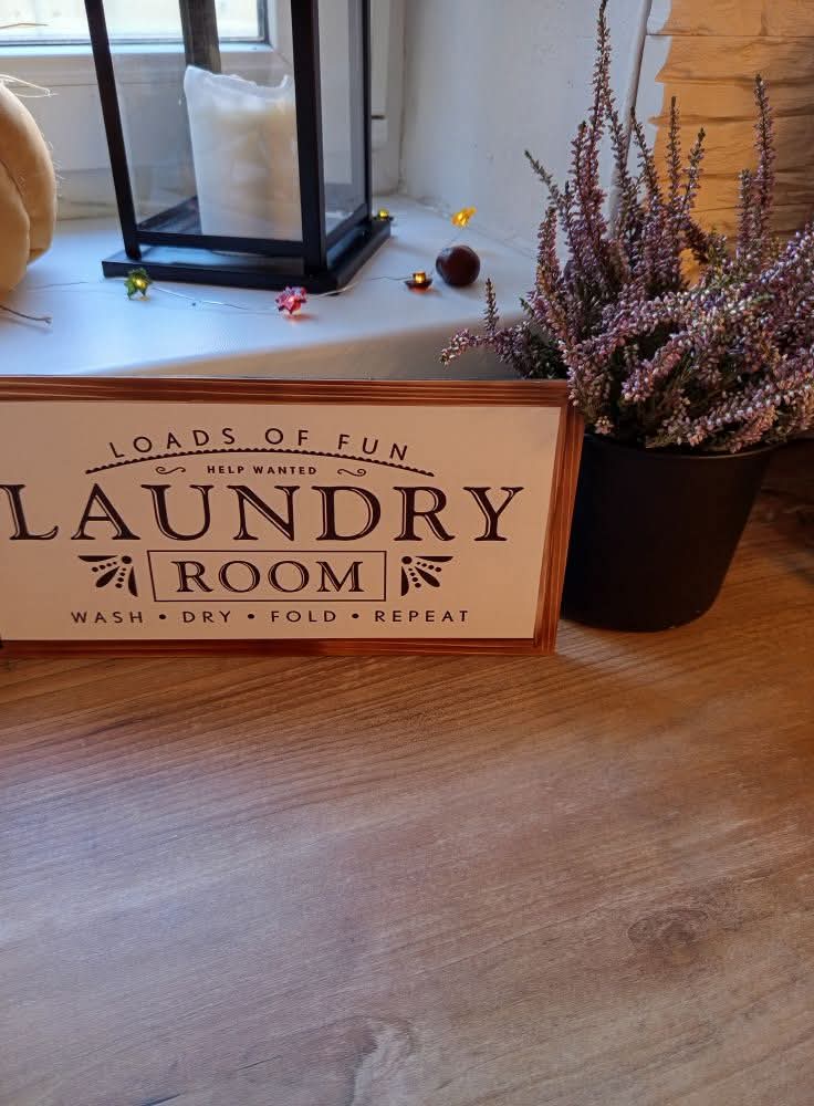 Vneste do své prádelny špetku humoru a stylu! Dekorativní cedulka Laundry Room – Loads of Fun, Help Wanted, Wash, Dry, Fold, Repeat je ideální doplněk pro každý domov, který miluje venkovský a rustikální styl.