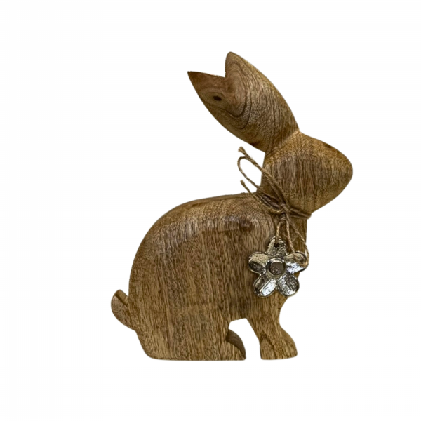 Stylový zajíc v kombinaci přírodních materiálů. Hodí se na jarní i celoroční výzdobu.