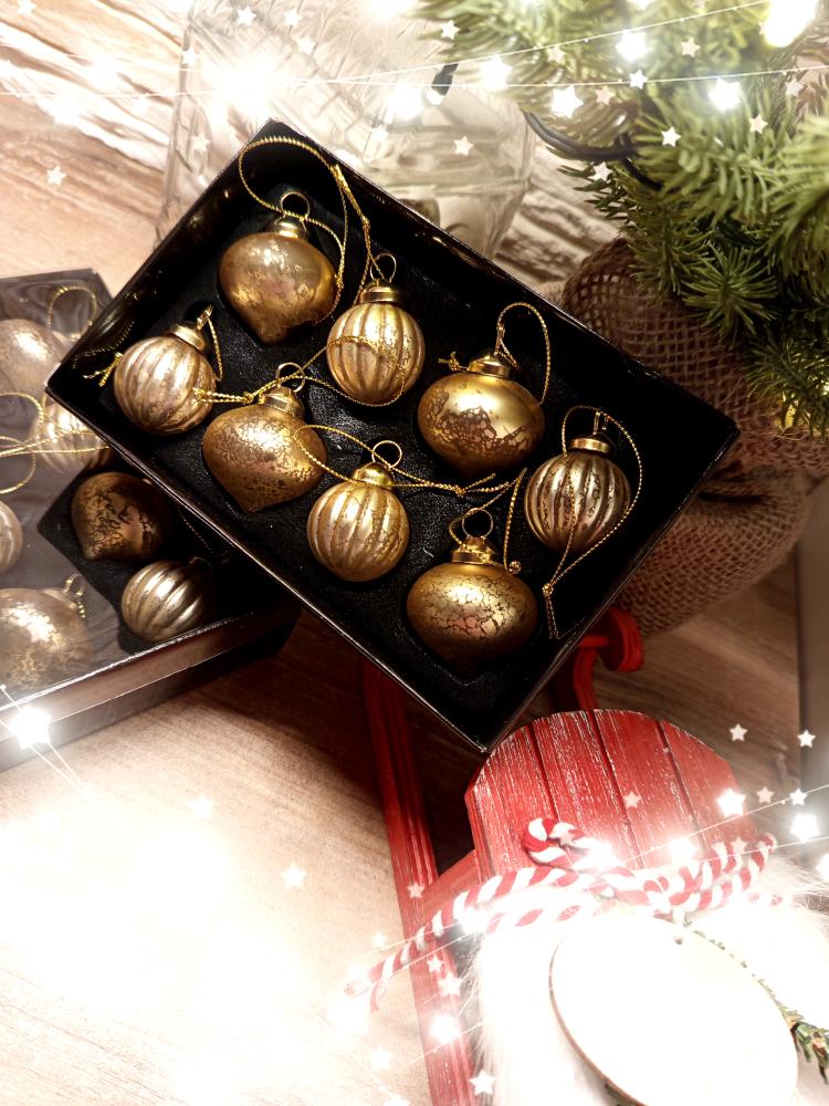 Sada vánočních ozdob.Sada obsahuje 8 ozdob.Rozměry: 4 x 4 x 4 cm.Materiál: sklo.Barva: zlatá.Tento výrobek není hračka.Materiál Sklo Barva Zlatá Rozměry 4 x 4 x 4 cm