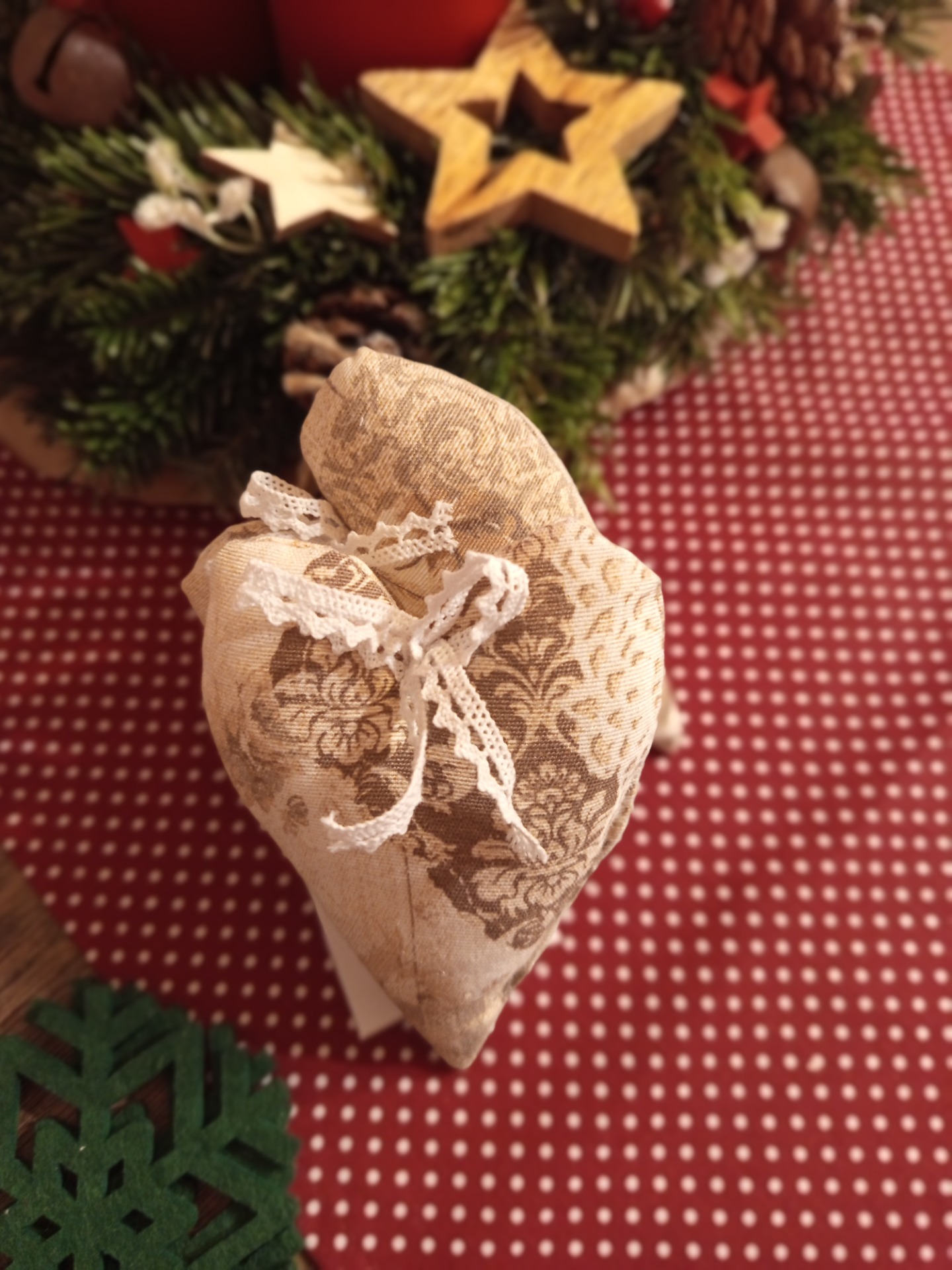 rustikální srdíčko, plněné dutým vláknem. Výška 12 cm