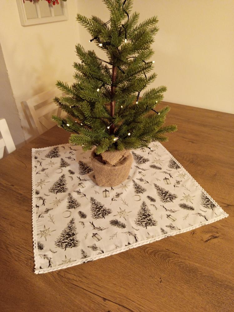 ytvořte si doma tu pravou sváteční atmosféru s naším středovým ubrusem "Vánoční chvíle". Bavlněný ubrus v přírodní bílé barvě zdobí jemný motiv vánočních stromečků, větviček a hvězd v decentních tónech šedé a černé. Po okrajích je doplněn úzkou krajkou, která mu dodává šmrnc a venkovský půvab.