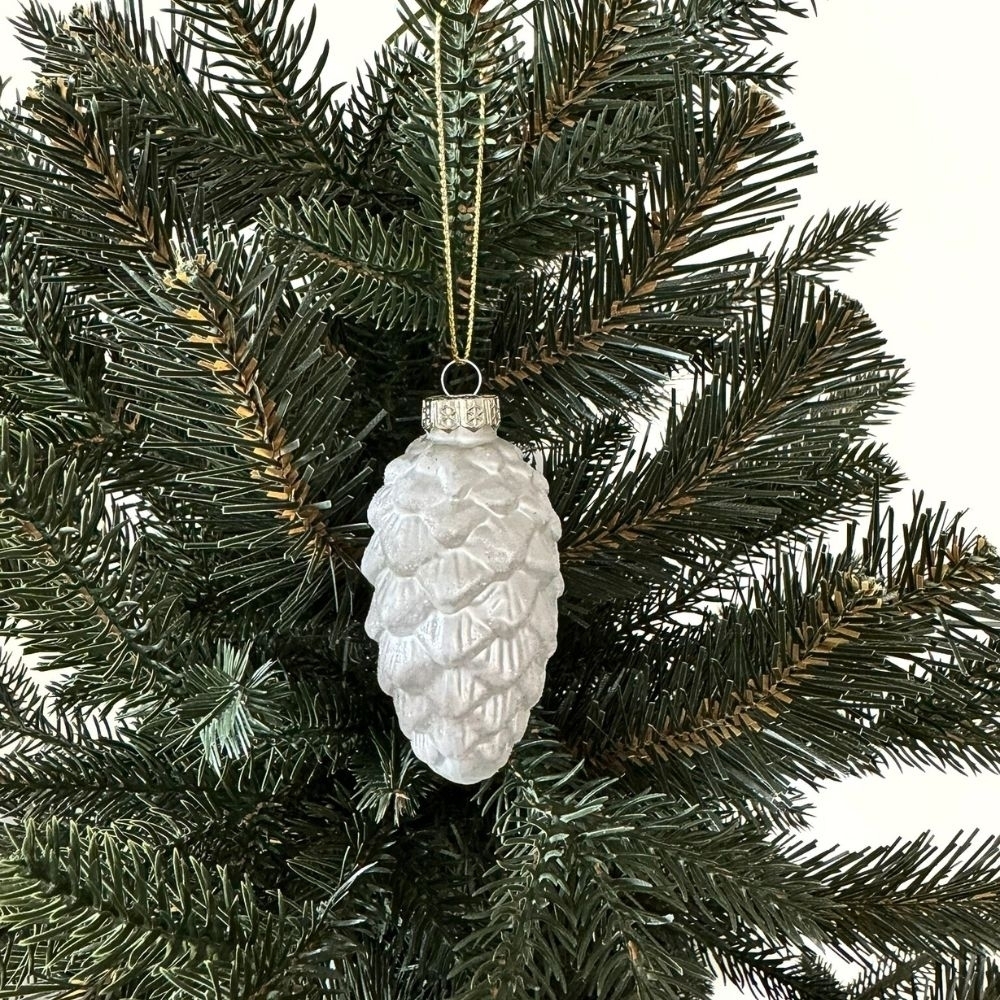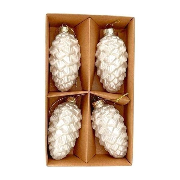 Vánoční ozdoby ve tvaru šišek v jemně bílém provedení přinesou vašemu stromečku přirozenou krásu a čistotu zimní přírody.