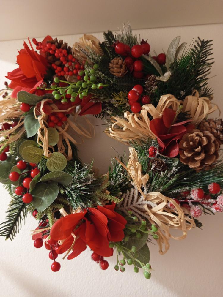 Věnec se hodí na dveře, zeď i do středu stolu.