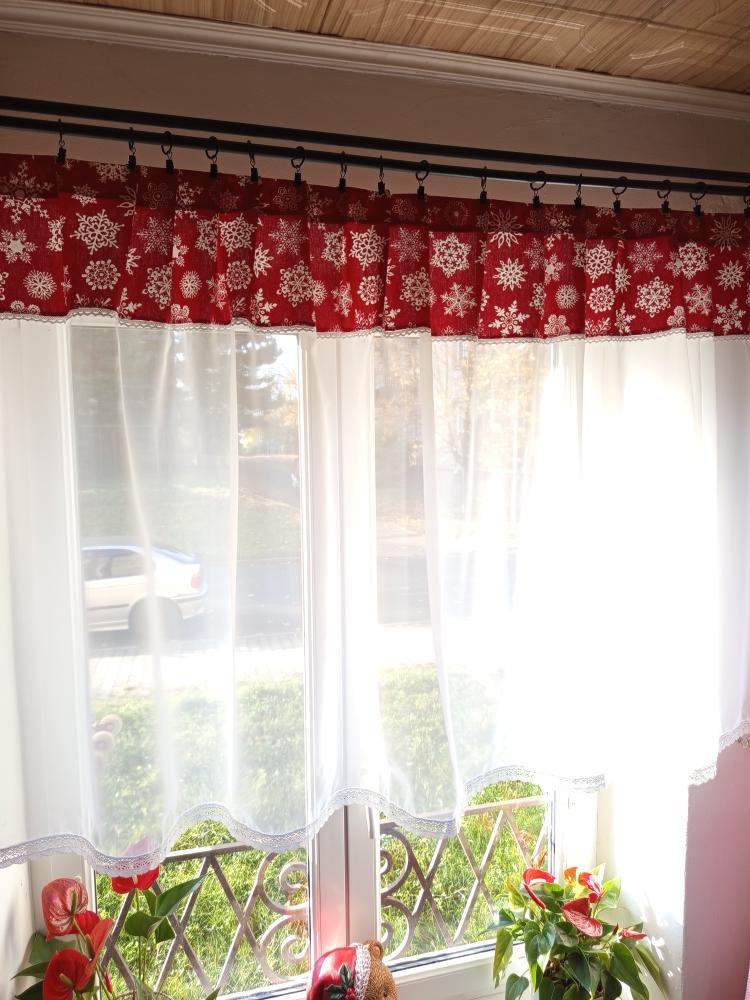 Jemná voálová záclonka s pevným bavlněným lemem v červeném tónu se zimním motivem vloček dodá vašemu oknu sváteční atmosféru a útulný vzhled. Lehký voál krásně propouští světlo a vytváří příjemnou, hřejivou náladu v interiéru.